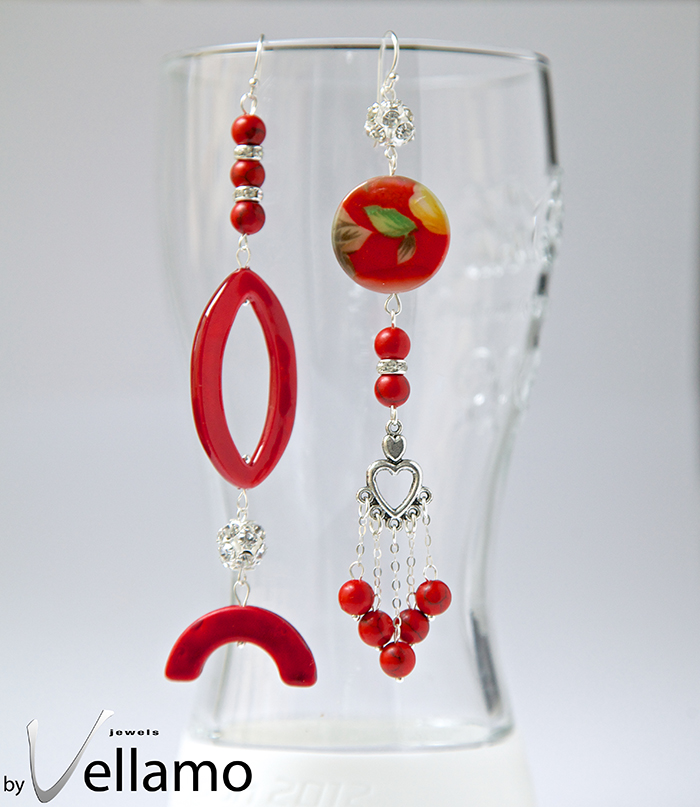 Recently I have started making these long earrings in many colors, using a combination of stones, cloisonne beads and Swarovski crystals.